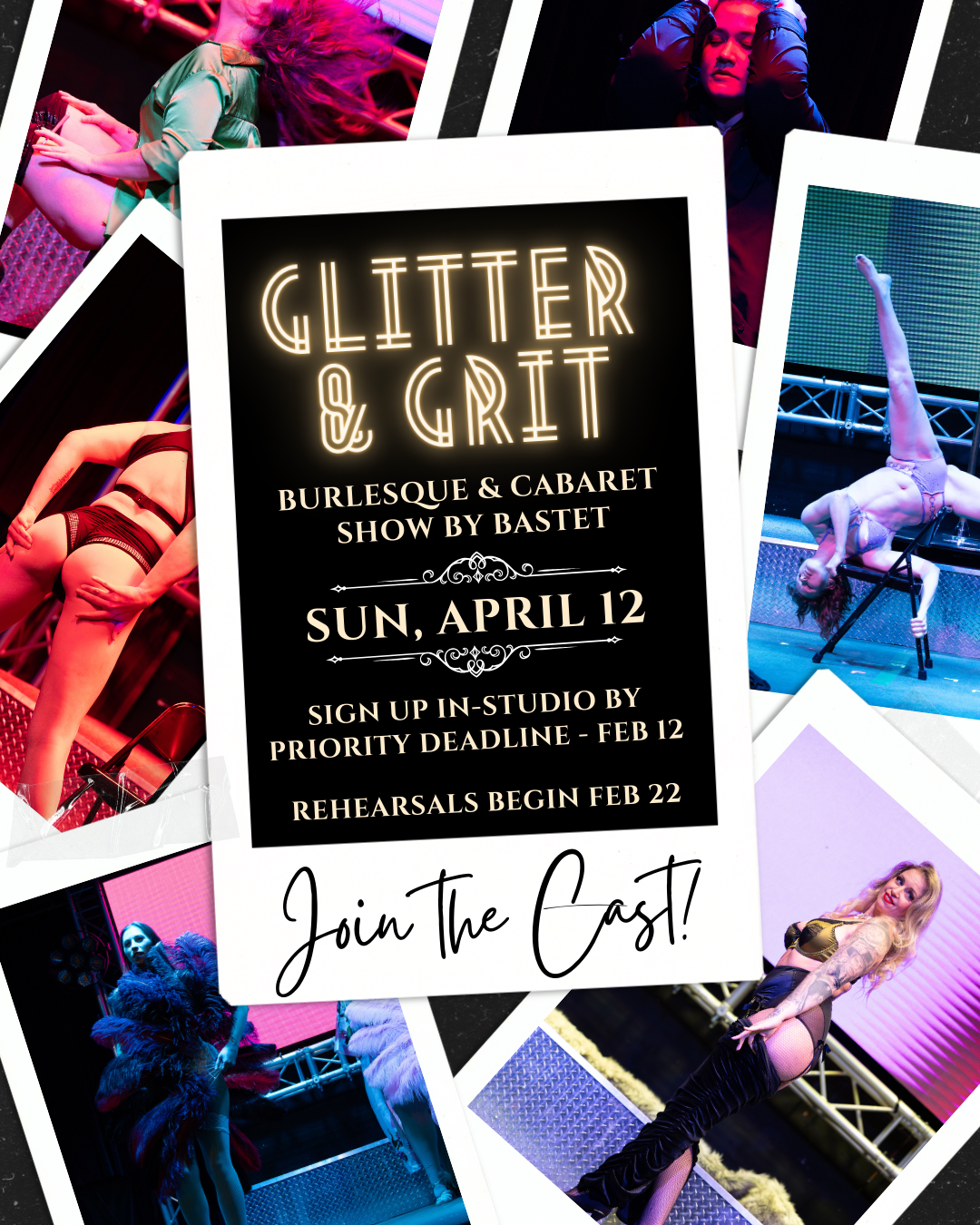 ✨ Calling All Bastet Performers ✨ Glitter & Grit 2026 Bastet’s 2nd Annual Out-of-Studio Burlesque / Cabaret Show Ready to take your dancing off the studio floor and onto a professional stage?Glitter & Grit is a bold, body-positive cabaret experience created for Bastet dancers who want to explore performance, presence, and storytelling in a real […]
